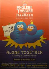 Vom 15. November bis zum 19. Januar läuft im Englischen Theater Hamburg mit „Alone Togehter“ das zweite Stück der aktuellen Saison 07/08. Das Stück handelt von Helen (Gina Rowland) und George Butler (James Walmsley), die nun zusehen wie ihr drittes, und letztes, Kind das familiäre Haus verlässt um die Welt zu erobern. Die Vorfreude auf die gemeinsame Zweisamkeit ist groß; der Sekt kaltgestellt und der Kamin brennt. Doch plötzlich kommt alles anders, denn ihre Söhne Michael (Jonathan Gunning), Elliot (Alexander Fiske-Harrison) und Keith (Oliver Hilton) zieht es schneller nach Hause zurück als es ihnen Lieb ist. Als plötzlich auch noch eine wildfremde Frau von einem ihrer Söhne eine freies Zimmer im elterlichen Hause angeboten bekommt, gehen die Nerven der Eltern komplett auf Grundeis. Und die Frage, wer denn nun Schuld ist am Scheitern der Kinder, ist omnipräsent.
